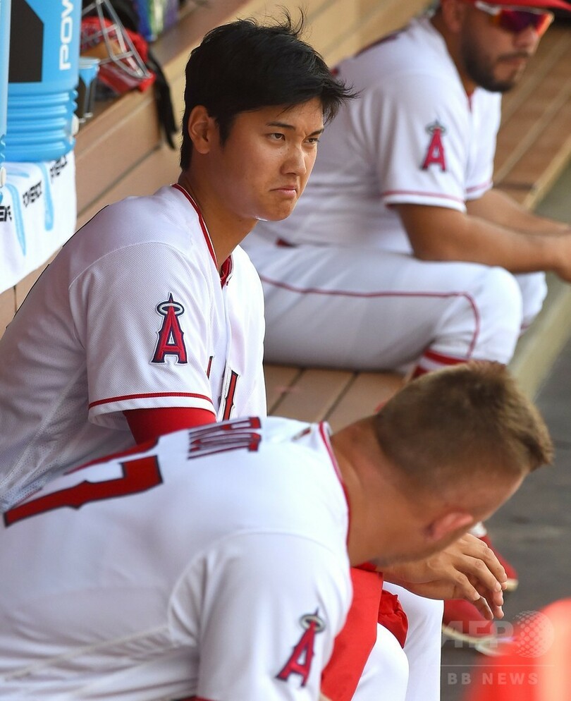 前回登板となった1日のアスレチックス戦では3点本塁打を打たれながらも勝利投手となった大谷は、その後指名打者(DH)として先発出場した3試合すべてで本塁打を放っている。(c)AFP