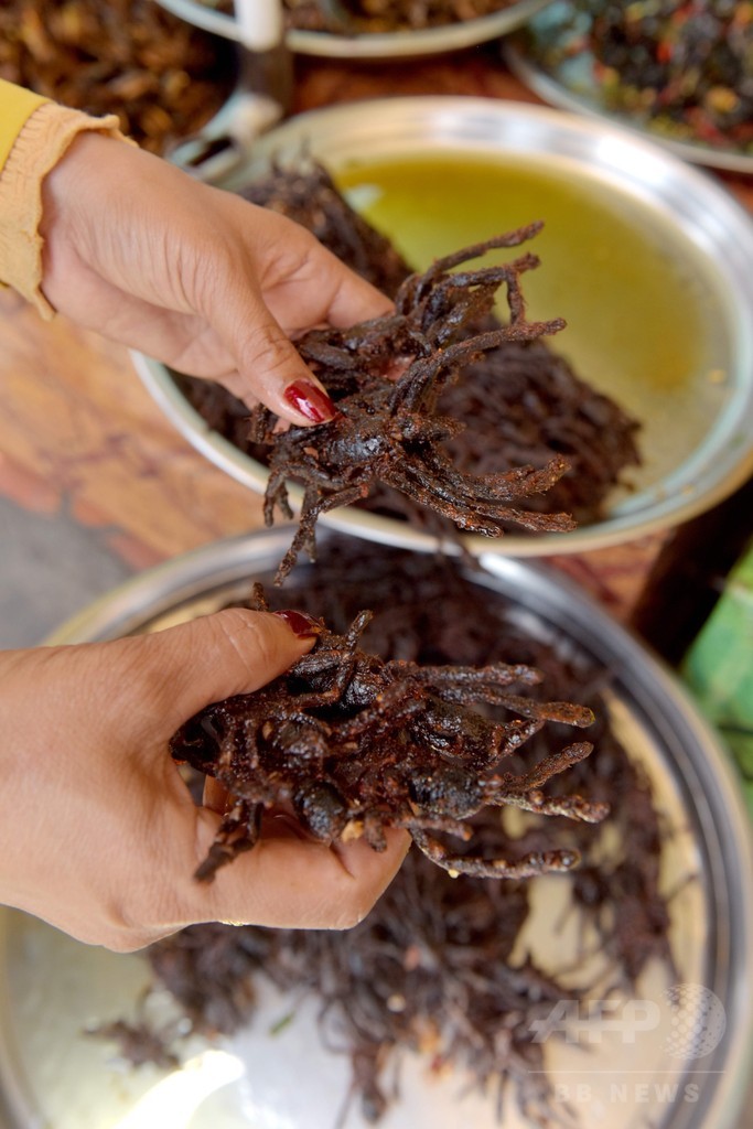同国中部スクン(Skun)は「スパイダー村(Spiderville)」として知られ、タランチュラの一大市場となっている。訪れた観光客たちが、悲鳴を上げながら丸々と太ったタランチュラにかじりつく写真を撮るは定番だ。