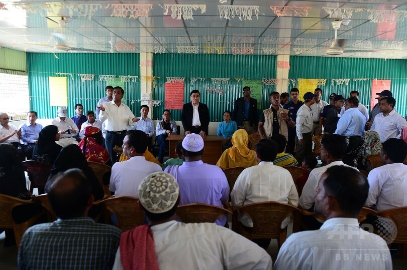 ミャンマー閣僚、ロヒンギャの難民キャンプを訪問 大量流入以降初