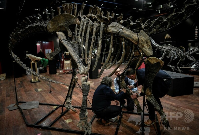 【4月12日 AFP】フランス・パリで11日、恐竜2体の骨格標本が競売に掛けられ、いずれも140万ユーロ(約1億8500万円)超の高値で落札された。仏競売会社ドゥルオ(Drouot)によると落札者は2体とも同じ外国人バイヤーだという。