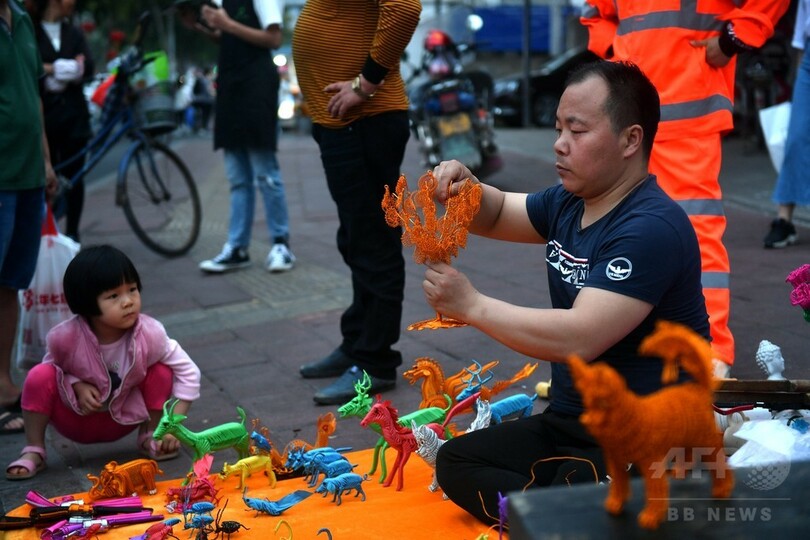 アリ、バッタ、クモ、蛇、馬・・・王さんの露店はまるで動物園さながらで、道を行き交う人たちが足を止める。王さんは、自宅で手工芸を独学で始めた頃は簡単な物しか作れなかったが、今年の初めごろ手工芸の先生と知り合ったことがきっかけで、本格的に勉強を始めたという。