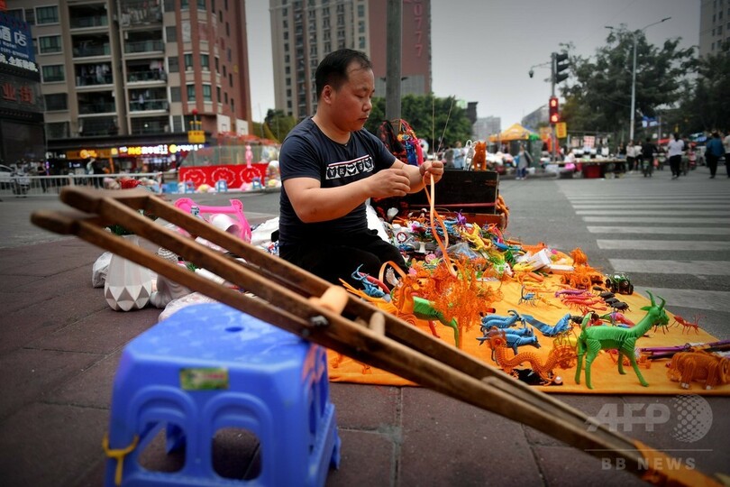 アリ、バッタ、クモ、蛇、馬・・・王さんの露店はまるで動物園さながらで、道を行き交う人たちが足を止める。王さんは、自宅で手工芸を独学で始めた頃は簡単な物しか作れなかったが、今年の初めごろ手工芸の先生と知り合ったことがきっかけで、本格的に勉強を始めたという。