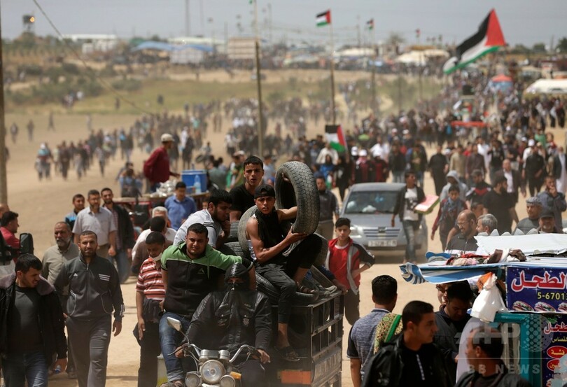 【4月13日 AFP】パレスチナ自治区ガザ地区(Gaza Strip)のイスラエルとの境界付近で13日、3週連続となる大規模な抗議行動に数千人が集まり、一部がイスラエル軍と衝突した。一連の騒ぎでイスラエル軍はこれまでにパレスチナ人33人を殺害しており、負傷者は数百人に上っている。