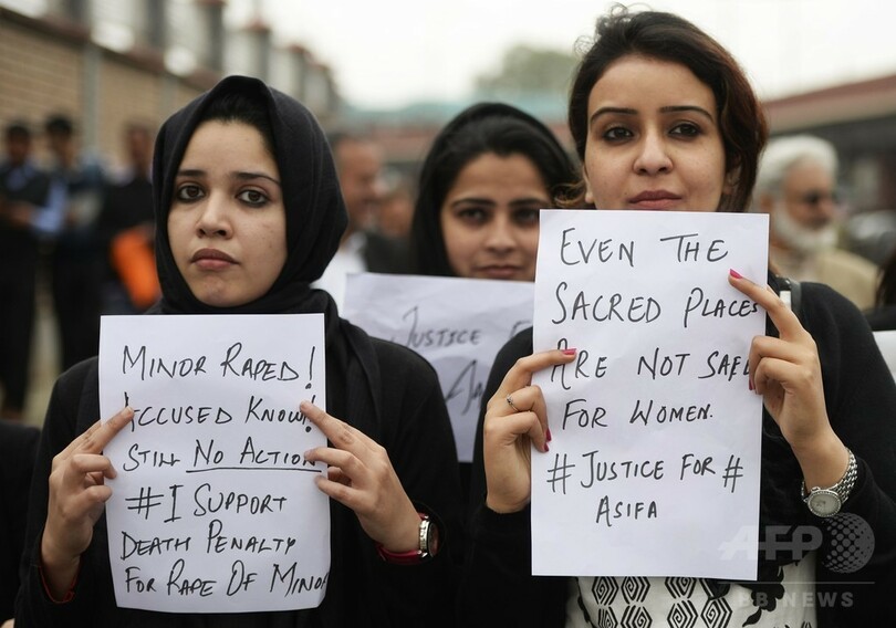 【4月16日 AFP】インドで16日、8歳の女児が集団レイプされた末に殺害された事件の裁判の初公判が行われ、被告らが無罪を主張した。これを受け、同国各地では反発する人々が抗議デモを繰り広げ、数千人が街頭に繰り出した。