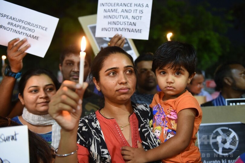 【4月17日 AFP】インドで17日、レイプされて首を絞められた7歳の女児の遺体が見つかり、女性や少女らへのおぞましい性犯罪が後を絶たないことに対する怒りがますます高まっている。