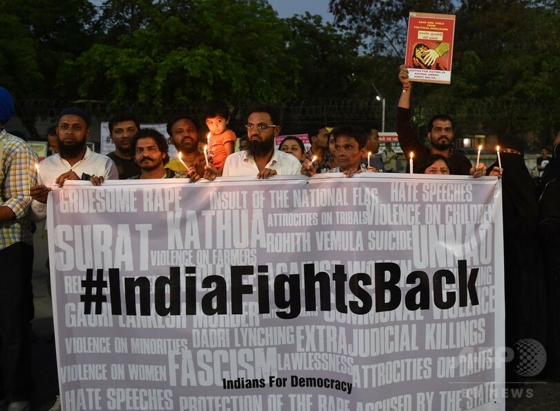 【4月17日 AFP】インドで17日、レイプされて首を絞められた7歳の女児の遺体が見つかり、女性や少女らへのおぞましい性犯罪が後を絶たないことに対する怒りがますます高まっている。
