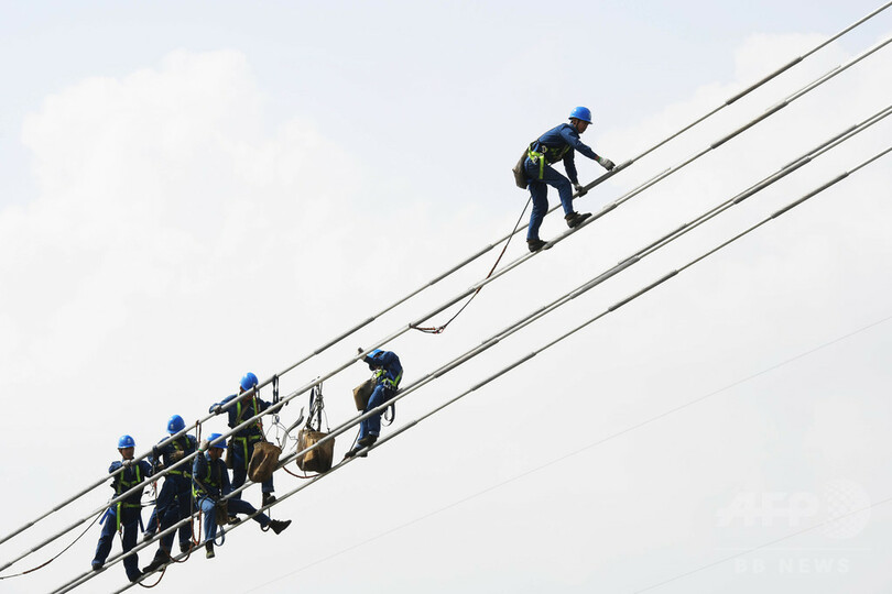 昌吉と古泉を結ぶプロジェクトは、電圧レベルは世界トップレベル。送電量は世界最大、送電距離は世界最長で、「一帯一路(Belt and Road)」建設の重要な役割を担う。(c)CNS/JCM/AFPBB News