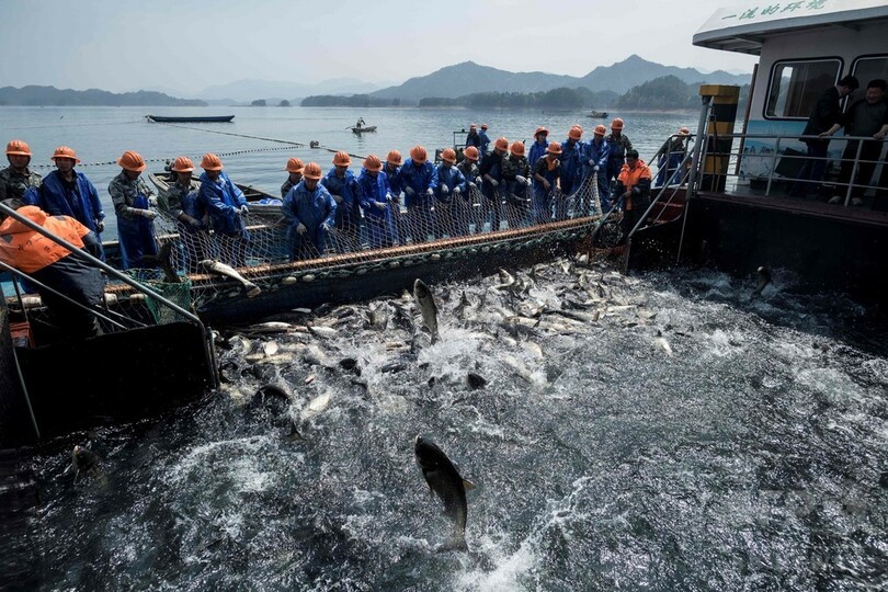 【4月29日 AFP】ある晴れた朝、中国東部・浙江(Zhejiang)省にある千島湖(Qiandao Lake)の湖面は漁師の網にかかって暴れる大量の魚でお湯が沸き立っているように見えた。