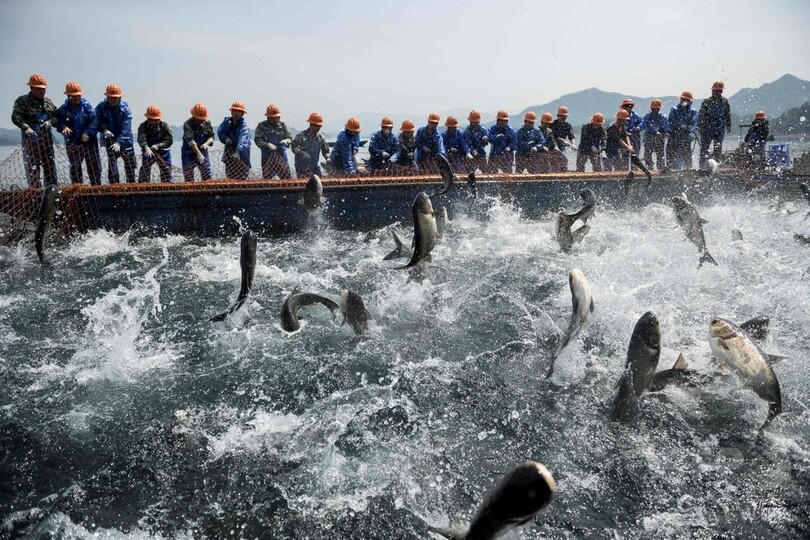 【4月29日 AFP】ある晴れた朝、中国東部・浙江(Zhejiang)省にある千島湖(Qiandao Lake)の湖面は漁師の網にかかって暴れる大量の魚でお湯が沸き立っているように見えた。
