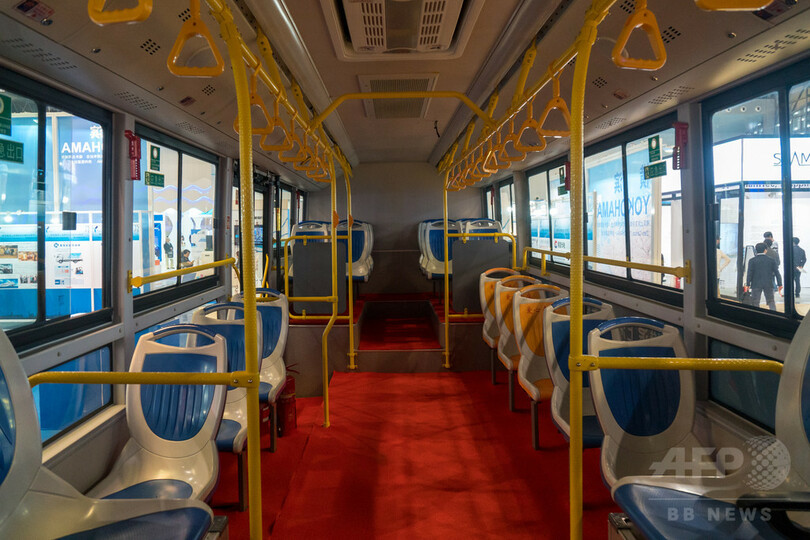 展示会では、中日共同開発による水素エネルギーの公共バスが展示された。バスのエネルギー源となっているのは、無害の水素ガス。バスのコンポーネントを日本で、コアとなる技術は、中国の知的財産を活用している。(c)CNS/JCM/AFPBB News