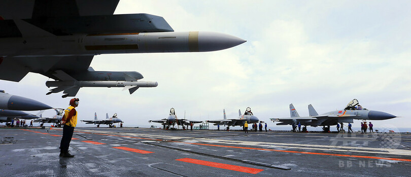 国営新華社(Xinhua)通信によると、東シナ海での実弾演習は22日に実施された。新華社は、中国唯一の空母「遼寧(Liaoning)」が率いる艦隊が、「敵」勢力を想定した対空・対潜軍事演習に参加したと報道。複数のJ15戦闘機が遼寧から発進し「空母を囲む艦艇から対空ミサイルが発射された」とした。
