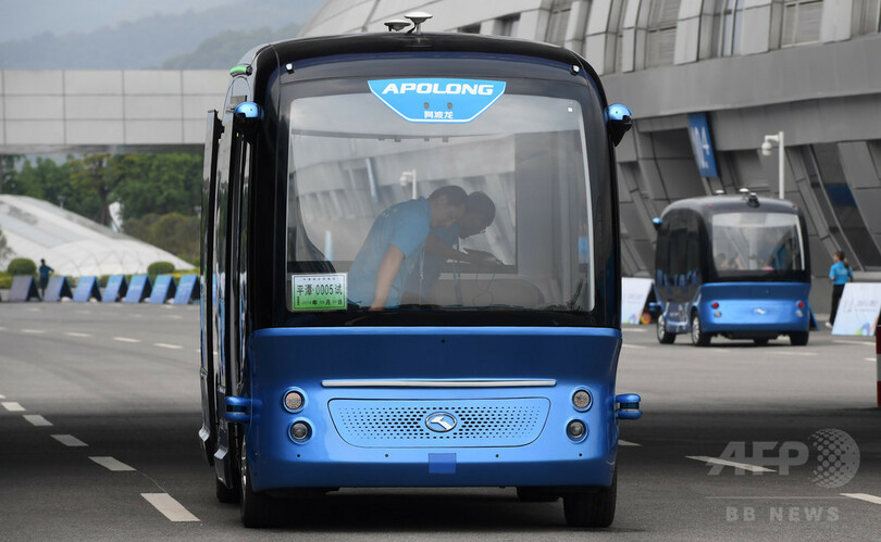 アポロンは、百度(Baidu)の自動運転システムであるアポロ(Apollo)と金龍客車(King Long)が共同で開発した小型のバス。(c)CNS/JCM/AFPBB News
