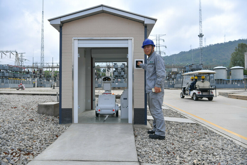 昆明供電局は今年に入り、スマート巡回・点検ロボを7台投入しており、今後さらに全局の35キロボルト以上の変電所すべてにロボットを配備するという。(c)CNS/JCM/AFPBB News