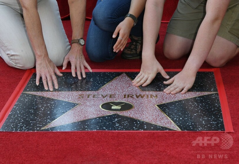 【4月27日 AFP】米カリフォルニアの「ハリウッド・ウォーク・オブ・フェイム(Hollywood Walk of Fame)」に、「クロコダイルハンター」の愛称で知られた環境保護活動家、故スティーブ・アーウィン(Steve Irwin)さんの星が追加された。26日に行われたセレモニーにはアーウィンさんの妻と子どもたちが出席し、アーウィンさんの名前が刻まれた星形のプレートをお披露目した。