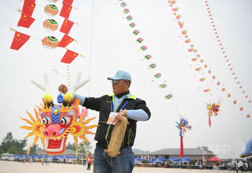 会場には中国のほか英、米、豪、インド、コロンビアなどから計51チーム、226人の選手が参加。色鮮やかなたこを駆使したパフォーマンスを披露した。(c)CNS/JCM/AFPBB News