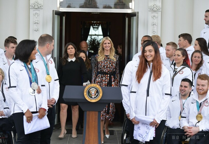 トランプ大統領は米首都ワシントン(Washington D.C.)のホワイトハウス(White House)の階段に並んだ選手に対して、「君たちのパフォーマンスに対し、われわれは心から誇りに思っている。そして、君たちの多くが金、銀、銅のメダルを手にし、王者として母国に凱旋(がいせん)した」と述べた。