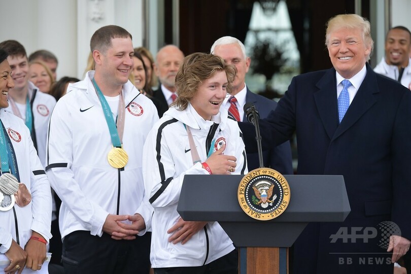 トランプ大統領は米首都ワシントン(Washington D.C.)のホワイトハウス(White House)の階段に並んだ選手に対して、「君たちのパフォーマンスに対し、われわれは心から誇りに思っている。そして、君たちの多くが金、銀、銅のメダルを手にし、王者として母国に凱旋(がいせん)した」と述べた。