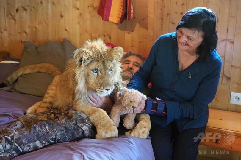 【4月28日 AFP】フランス南西部カステイユ(Casteil)で小さな私立動物園を経営するドミニク・カセス(Dominique Cases)さんとジュリエット(Juliette Cases)さん夫婦は、生後9か月の雄ライオンのシンバ(Simba)と自宅で暮らしている。