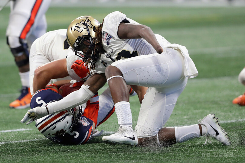 グリフィンは4歳の時に羊膜帯症候群という珍しい先天異常の影響で左手を切断。それでも、所属したセントラルフロリダ大学(University of Central Florida)では通算39試合(先発26試合)に出場し、タックル175回、サック18.5回、インターセプト2回を記録するなど、素晴らしいキャリアを送った。