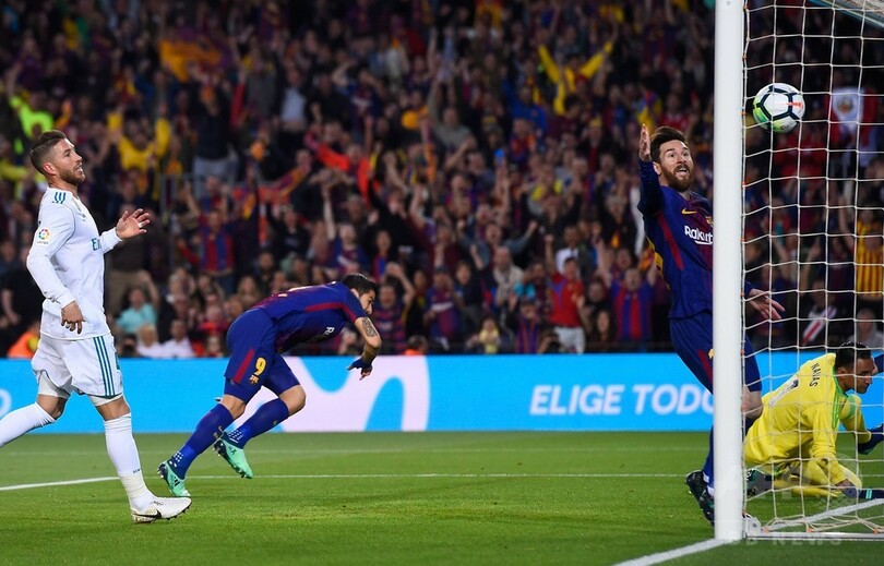 前半バルセロナはルイス・スアレス(Luis Suarez)の得点で先制したが、直後にレアルはロナウドがジェラール・ピケ(Gerard Pique)に競り勝ち同点ゴールを挙げた。前半終了間際にバルセロナは、セルジ・ロベルト(Sergi Roberto Carnicer)がマルセロ(Marcelo Vieira Da Silva Junior)に対する暴力行為で退場処分を受け、数的不利に陥った。