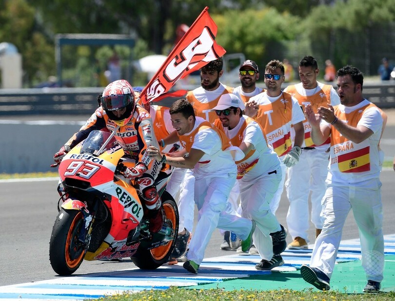 【5月7日 AFP】世界ロードレース選手権(WGP 2018)第4戦のスペインGPは7日、ヘレス・レーストラック(Jerez Racetrack)でMotoGPクラス決勝が行われ、優勝したレプソル・ホンダ(Repsol Honda)のマルク・マルケス(Marc Marquez、スペイン)が年間首位に浮上した。