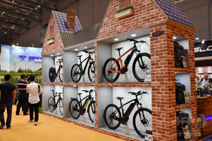 テーマは、「スマート製造とシェアの世界」。自転車業界の最新の科学技術や製品の品質を紹介しながら、電動自転車や電動アシスト自転車のスマート化や軽量化、ファッション性を備えた最新の成果を展示。都市環境や市民の健康、レジャーなどに対して自転車が持つ無限の可能性を感じさせた。(c)CNS/JCM/AFPBB News