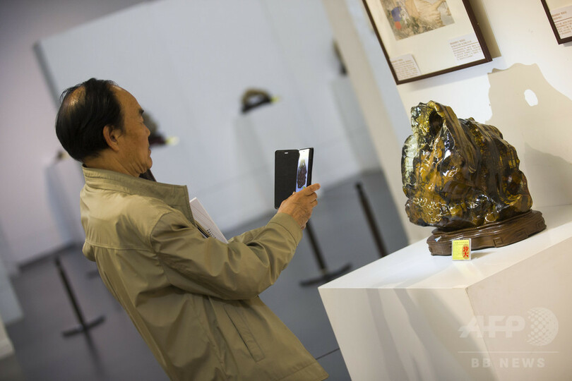 めったに見ることのできない希少価値の高いものや、石の絵画など、国内外の専門家から集められた約300点の観賞石が展示された。山西省観賞石協会、山西省収蔵家協会などの主催。(c)CNS/JCM/AFPBB News