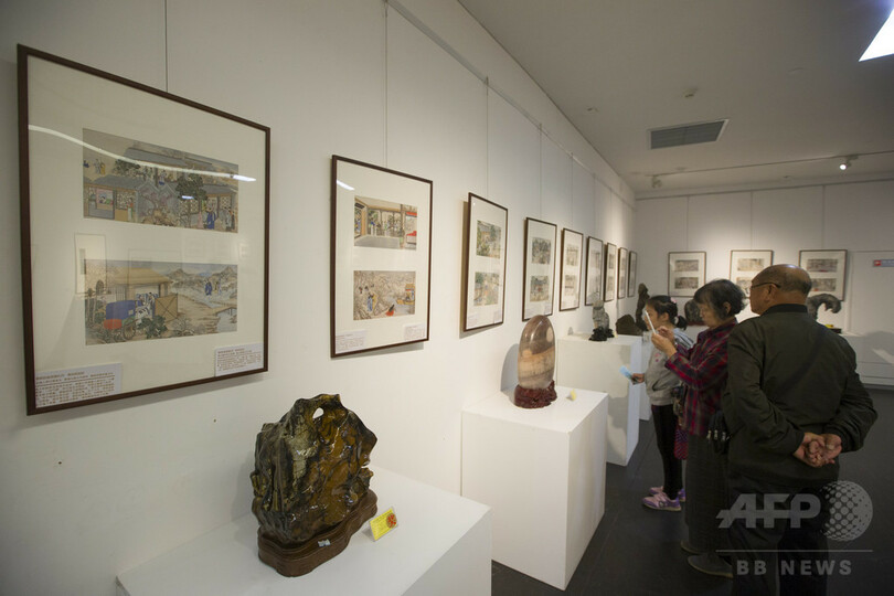 めったに見ることのできない希少価値の高いものや、石の絵画など、国内外の専門家から集められた約300点の観賞石が展示された。山西省観賞石協会、山西省収蔵家協会などの主催。(c)CNS/JCM/AFPBB News