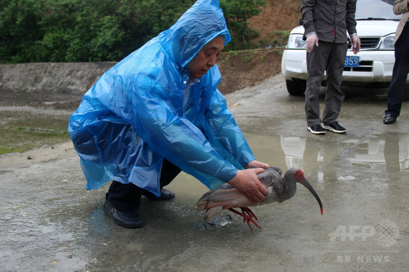 【5月9日 CNS】中国・陜西省(Shaanxi)漢中市(Hanzhong)洋県(Yang)で、足にけがをしたトキが7日間の治療を終え、自然の中へ帰っていった。