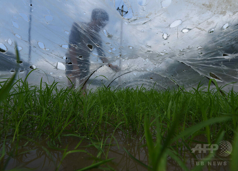 農家の家屋や、農作物に深刻な影響が出ている。けが人は出ていない。(c)CNS/JCM/AFPBB News