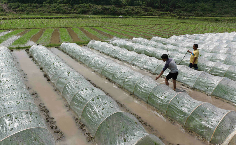 農家の家屋や、農作物に深刻な影響が出ている。けが人は出ていない。(c)CNS/JCM/AFPBB News