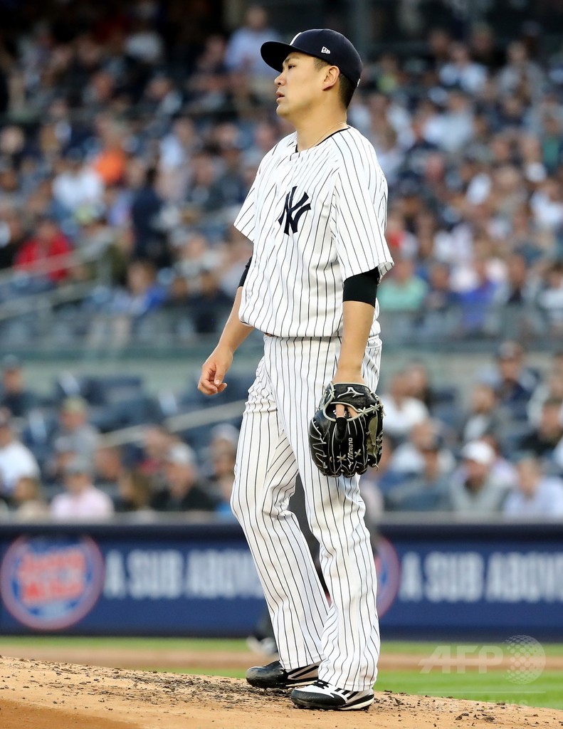 先発登板したヤンキースの田中将大(Masahiro Tanaka)は、5回3分の1を投げて4失点。2本の本塁打を浴びるなど、今季ワーストの8安打を許した。(c)AFP