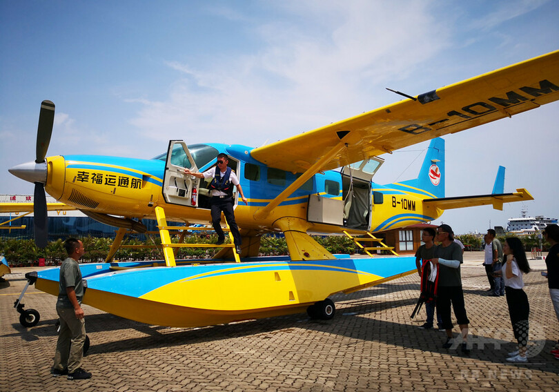 【5月12日 CNS】観光客を乗せた水陸両用の208B型セスナは9日午前10時30分、海口(Haikou)秀英港(Xiuying Harbar)第一埠頭臨時飛行場から離陸し、水上飛行機による観光フライトツアーが始まった。