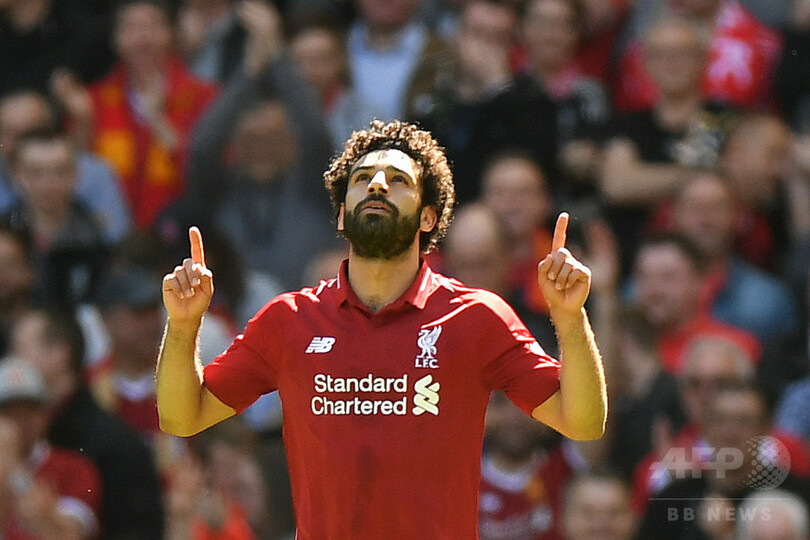 この日の試合前にプレミアリーグの年間最優秀選手にも選出されたサラーは、今季公式戦51試合に出場し44ゴールを挙げている。(c)AFP