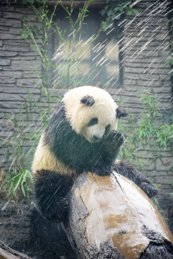 暑い!パンダもう水浴び 北京動物園