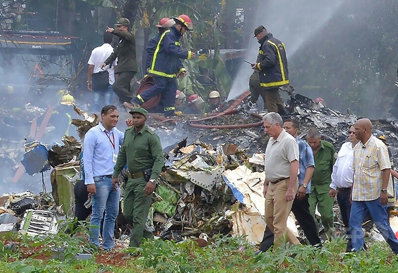 【5月19日 AFP】(更新)キューバで18日、乗客104人乗員6人の計110人を乗せた国営航空機が首都ハバナの空港を離陸した直後に墜落した。機体はほぼ完全に破壊され、残骸から煙がくすぶり続けている。同国のミゲル・ディアスカネル(Miguel Diaz-Canel)国家評議会議長は、多数の死傷者が出たもようだと述べた。