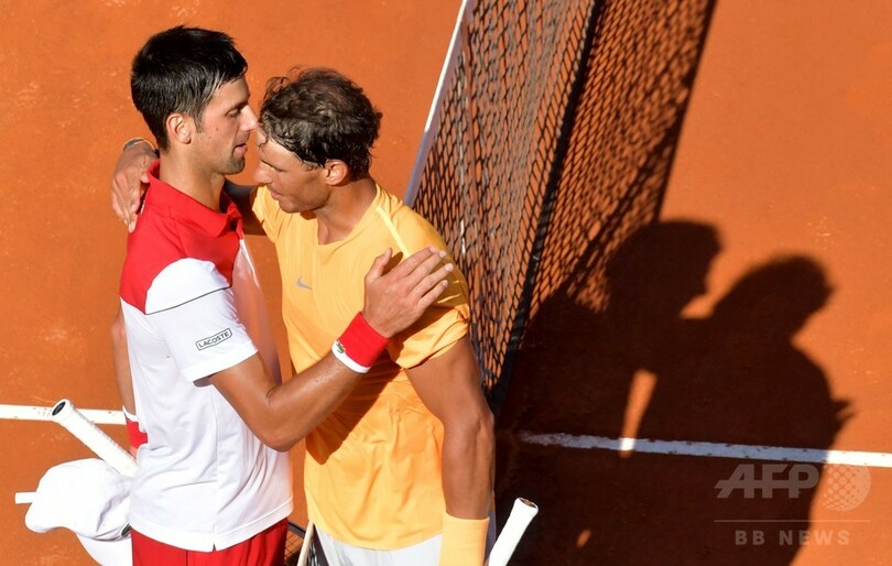 【5月20日 AFP】テニス、イタリア国際(Internazionali BNL d'Italia 2018)は19日、男子シングルス準決勝が行われ、大会第1シードのラファエル・ナダル(Rafael Nadal、スペイン)は第11シードのノバク・ジョコビッチ(Novak Djokovic、セルビア)を7-6(7-4)、6-3で下し、大会最多通算10度目の決勝進出を決めるとともに、通算8度目の優勝に一歩近づいた。