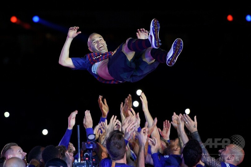 試合後には華々しいセレモニーが開催され、選手はイニエスタの名前が入ったユニホームを着てピッチに戻り、34歳の旅立ちと今季クラブが獲得したスペイン1部リーグ、スペイン国王杯のタイトル獲得を祝った。