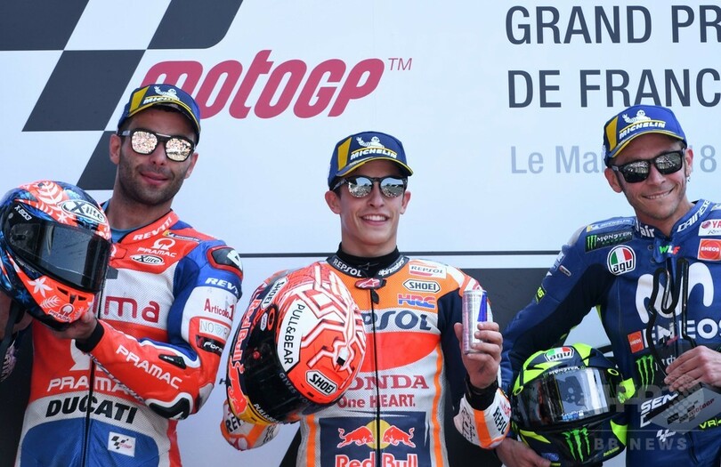 【5月21日 AFP】世界ロードレース選手権(WGP 2018)第5戦のフランスGPは20日、ルマン(Le Mans)のブガッティ・サーキット(Bugatti Circuit)でMotoGPクラス決勝が行われ、レプソル・ホンダ(Repsol Honda)のマルク・マルケス(Marc Marquez、スペイン)が3連勝を飾った。
