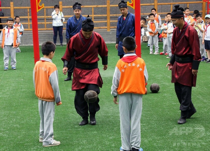 史料によると、紀元前の戦国時代には娯楽として民間で流行していたとされ、漢代ごろから兵士の訓練に使われるようになった。宋代になると、蹴鞠チームや蹴鞠芸人が出現し、清代では氷の上でする蹴鞠も流行したと記されている。蹴鞠は中国古代から受け継がれてきたスポーツだ。2006年5月20日に国家無形文化遺産に登録されている。(c)CNS/JCM/AFPBB News