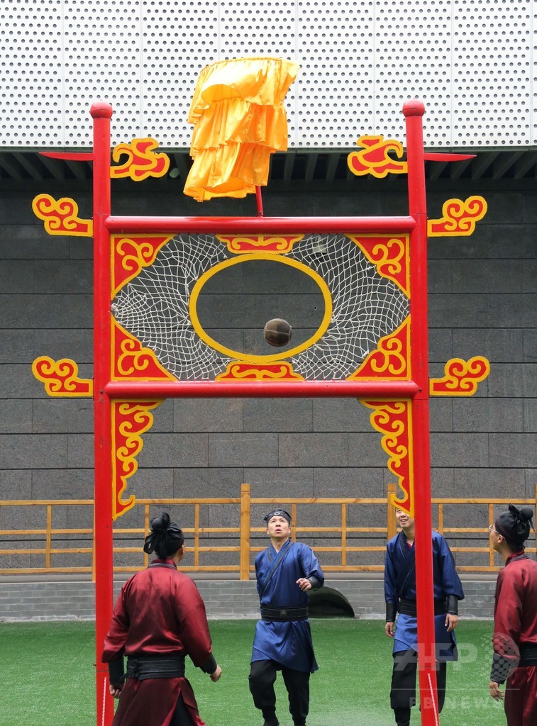 史料によると、紀元前の戦国時代には娯楽として民間で流行していたとされ、漢代ごろから兵士の訓練に使われるようになった。宋代になると、蹴鞠チームや蹴鞠芸人が出現し、清代では氷の上でする蹴鞠も流行したと記されている。蹴鞠は中国古代から受け継がれてきたスポーツだ。2006年5月20日に国家無形文化遺産に登録されている。(c)CNS/JCM/AFPBB News
