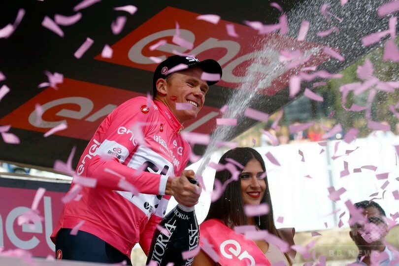 【5月26日 AFP】ジロ・デ・イタリア(Giro d'Italia 2018)は25日、第19ステージ(ベナリア・レアーレからバルドネッキア、185キロメートル)が行われ、チームスカイ(Team Sky)のクリス・フルーム(Chris Froome、英国)が独走でステージ優勝を果たすと、ピンクジャージーも奪取して再び大会初制覇に近づいた。前日まで総合首位を維持していたミッチェルトン・スコット(Mitchelton-Scott)のサイモン・イェーツ(Simon Yates、英国)は、残り80キロメートルで脱落する展開となった。
