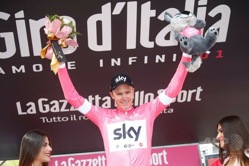 【5月26日 AFP】ジロ・デ・イタリア(Giro d'Italia 2018)は25日、第19ステージ(ベナリア・レアーレからバルドネッキア、185キロメートル)が行われ、チームスカイ(Team Sky)のクリス・フルーム(Chris Froome、英国)が独走でステージ優勝を果たすと、ピンクジャージーも奪取して再び大会初制覇に近づいた。前日まで総合首位を維持していたミッチェルトン・スコット(Mitchelton-Scott)のサイモン・イェーツ(Simon Yates、英国)は、残り80キロメートルで脱落する展開となった。