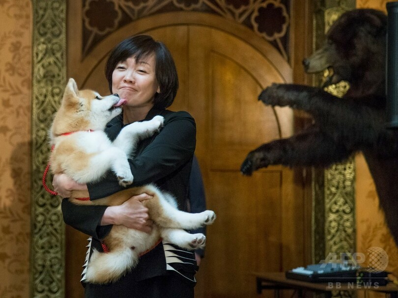 そのほかの著名人では、聴覚と視覚に障害があった社会活動家ヘレン・ケラー(Helen Keller)が米国に秋田犬を1匹連れて帰っており、2016年にはロシアのウラジーミル・プーチン(Vladimir Putin)大統領が日本から贈られた雌の秋田犬「ゆめ(Yume)」をお披露目していた。(c)AFP