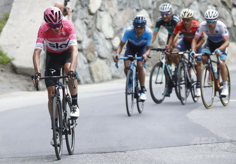 【5月27日 AFP】ジロ・デ・イタリア(Giro d'Italia 2018)は26日、第20ステージ(スサからチェルビナイア、214キロメートル)が行われ、チームスカイ(Team Sky)のクリス・フルーム(Chris Froome、英国)が事実上の大会総合初優勝と三大ツール(グランツール)3連勝を決めた。フルームの元同僚であるミッチェルトン・スコット(Mitchelton-Scott)のミケル・ニエベ(Mikel Nieve、スペイン)が逃げ切って、ステージ優勝を果たしている。