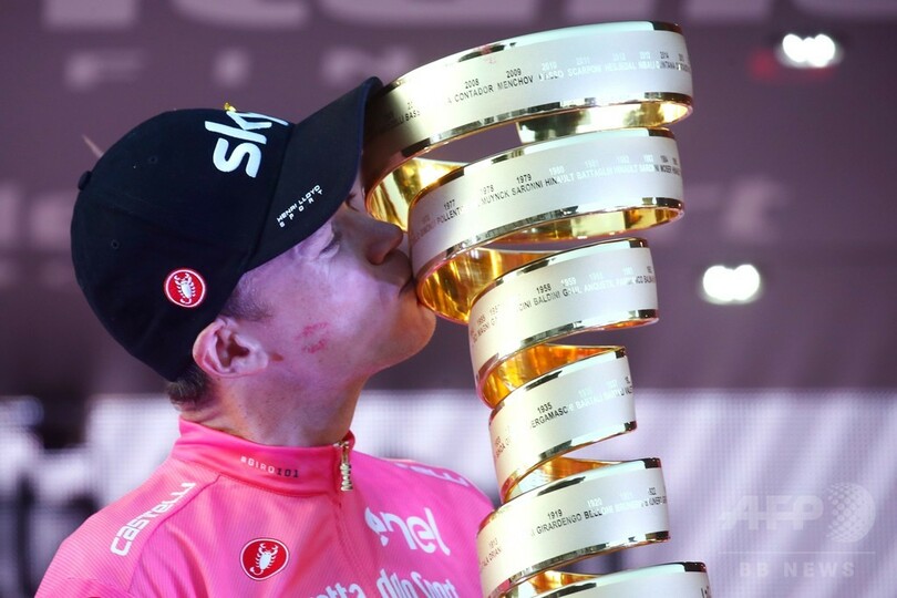 【5月28日 AFP】ジロ・デ・イタリア(Giro d'Italia 2018)は27日、最終第21ステージ(ローマ市内周回コース、115キロメートル)が行われ、チームスカイ(Team Sky)のクリス・フルーム(Chris Froome、英国)が見事な逆転総合優勝を飾り、三大ツール(グランツール)3連勝を果たした。