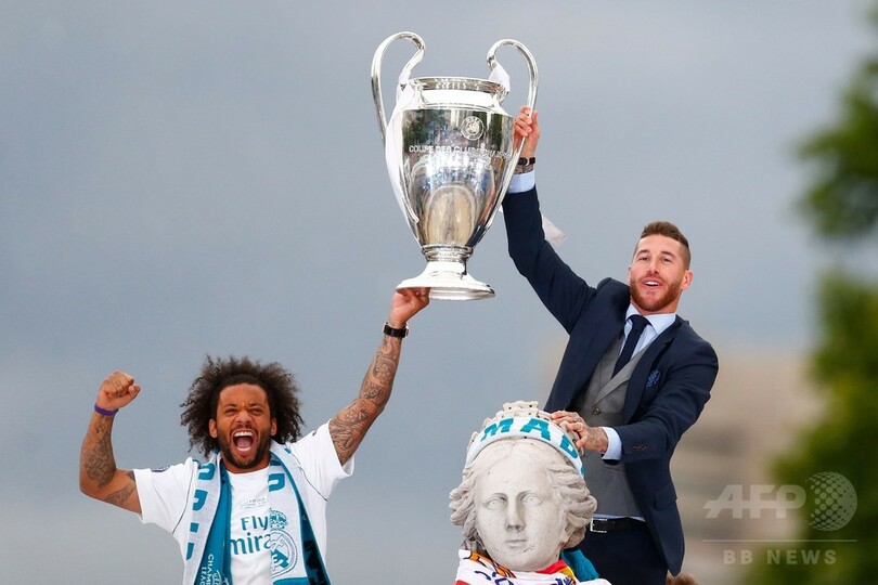 白塗りの大型バスには「Campeones 13(13度目の王者)」の文字があしらわれ、自らの最多記録を更新する通算13度目のチャンピオンズリーグ制覇を祝った。