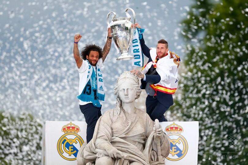 白塗りの大型バスには「Campeones 13(13度目の王者)」の文字があしらわれ、自らの最多記録を更新する通算13度目のチャンピオンズリーグ制覇を祝った。