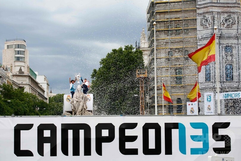 白塗りの大型バスには「Campeones 13(13度目の王者)」の文字があしらわれ、自らの最多記録を更新する通算13度目のチャンピオンズリーグ制覇を祝った。