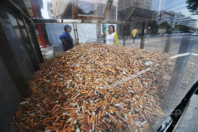 【5月31日 CNS】中国・甘粛省(Gansu)蘭州市(Lanzhou)の城関区(Chengguan)に、数万本のタバコの吸い殻が路上に展示され、市民の注目を集めている。